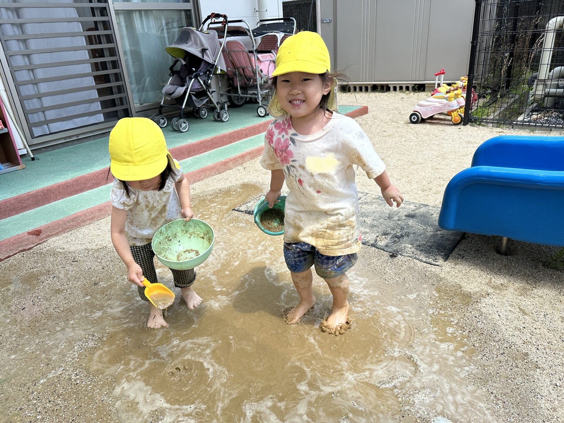 気温が上がり、暑い日もでてきたので、今年もどろんこあそびのはじまりです!