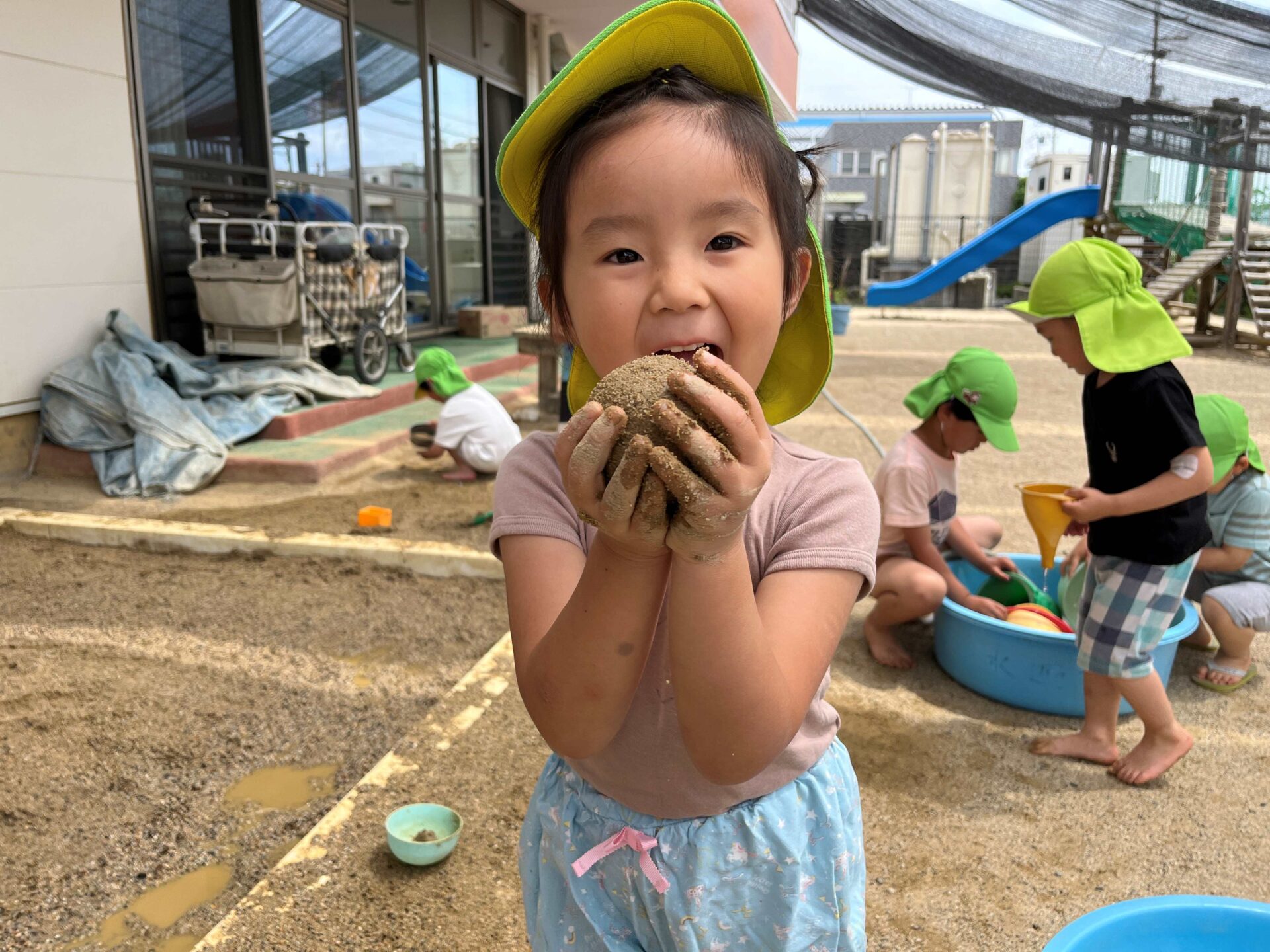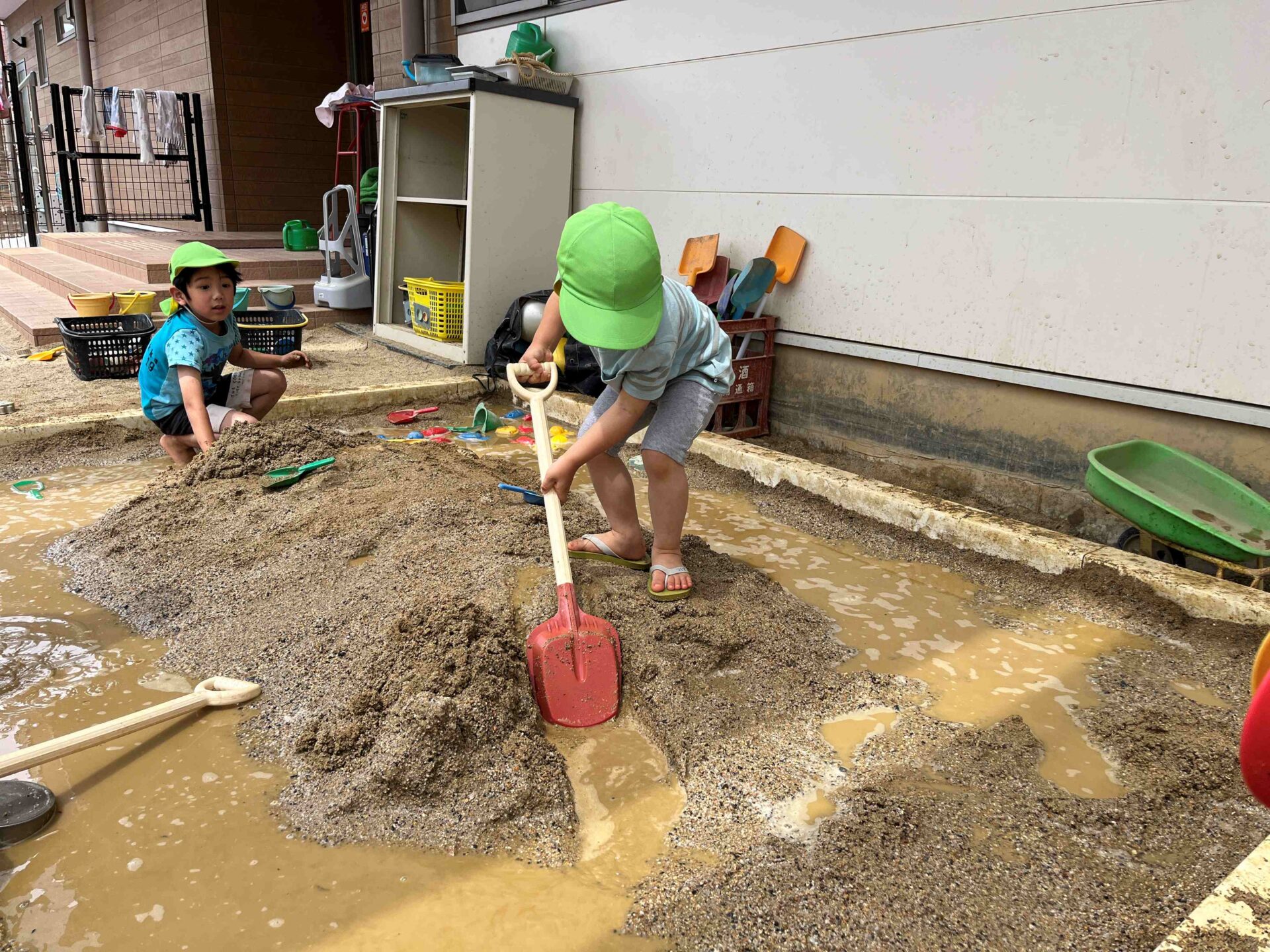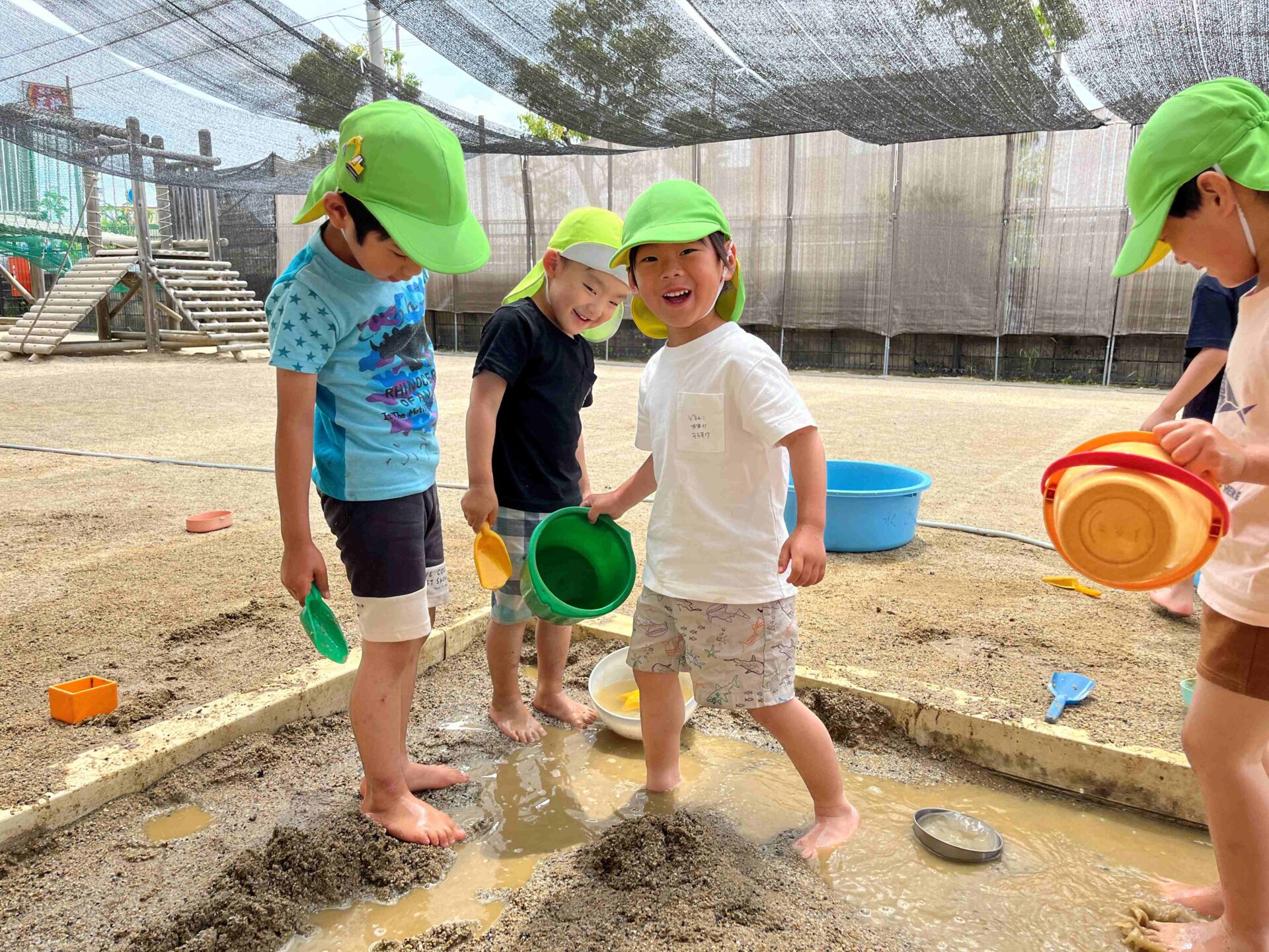 始める前から「今日の泥んこで何する~?」「泥団子作ってみたいー!」と、友だちと話していた子どもたち😄