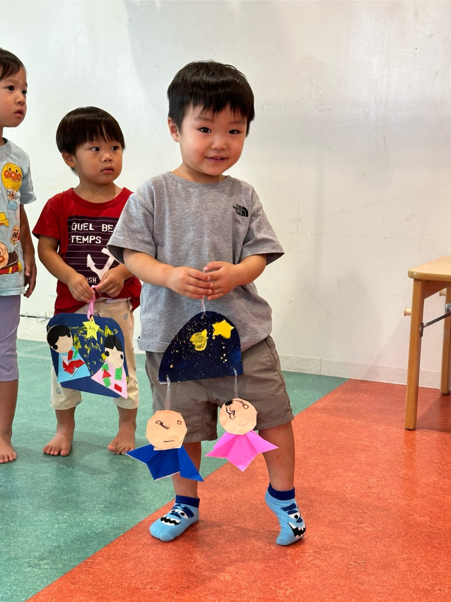 七夕の歌や、ペープサートで由来のお話しを聞いたあとは、クイズ大会!