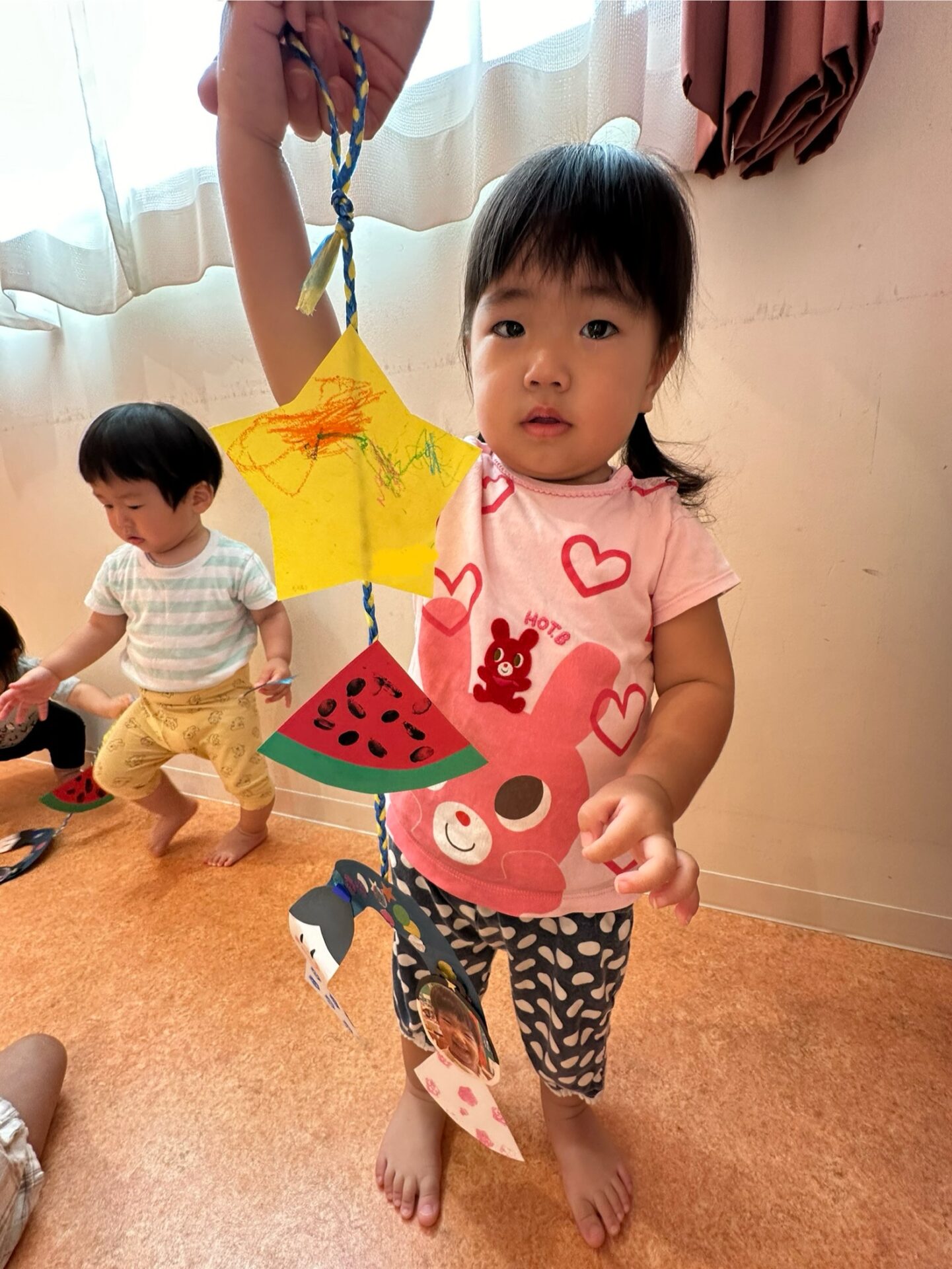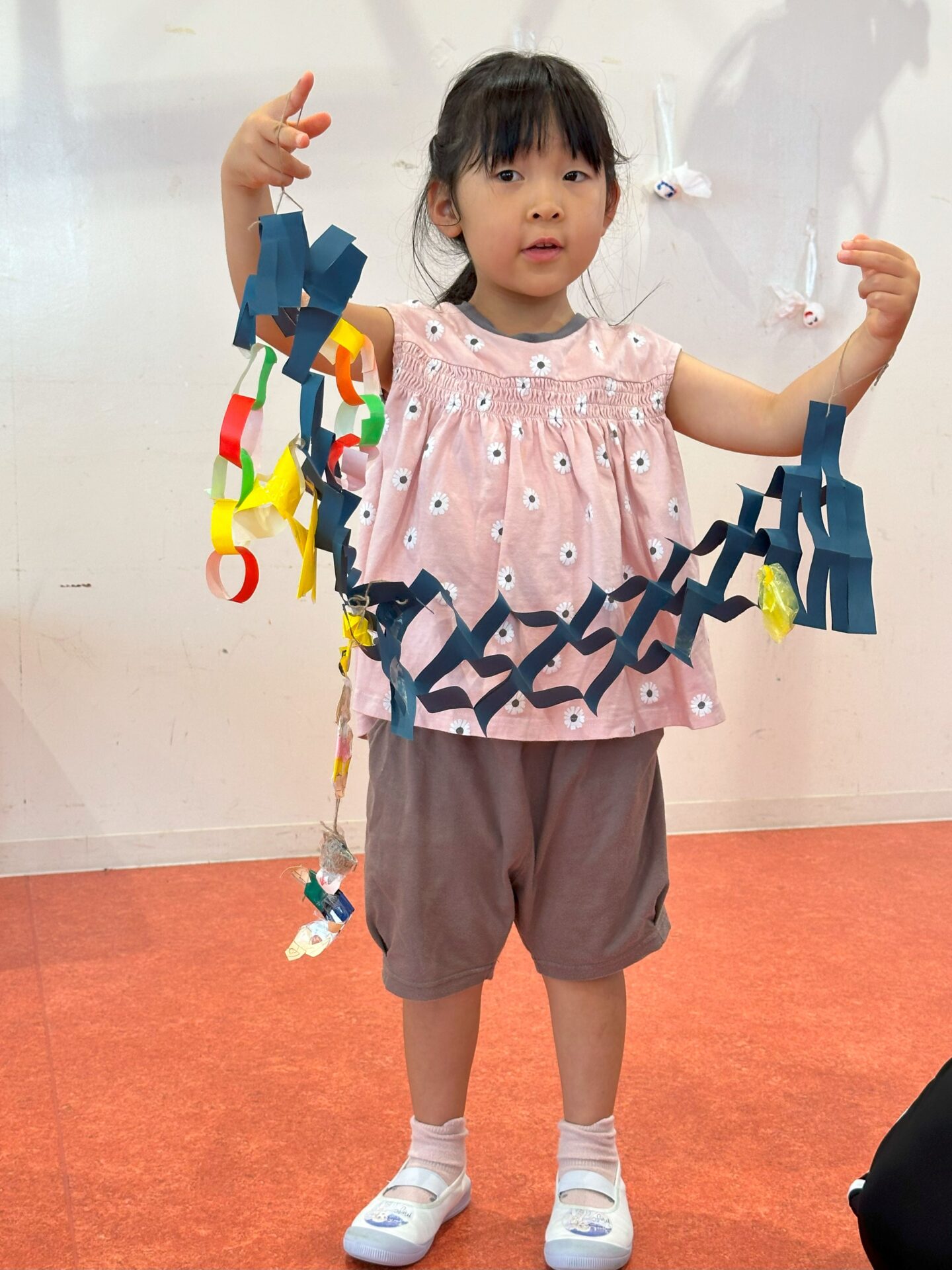 笹飾りも各チームで作ったので、みんなの前でお披露目!