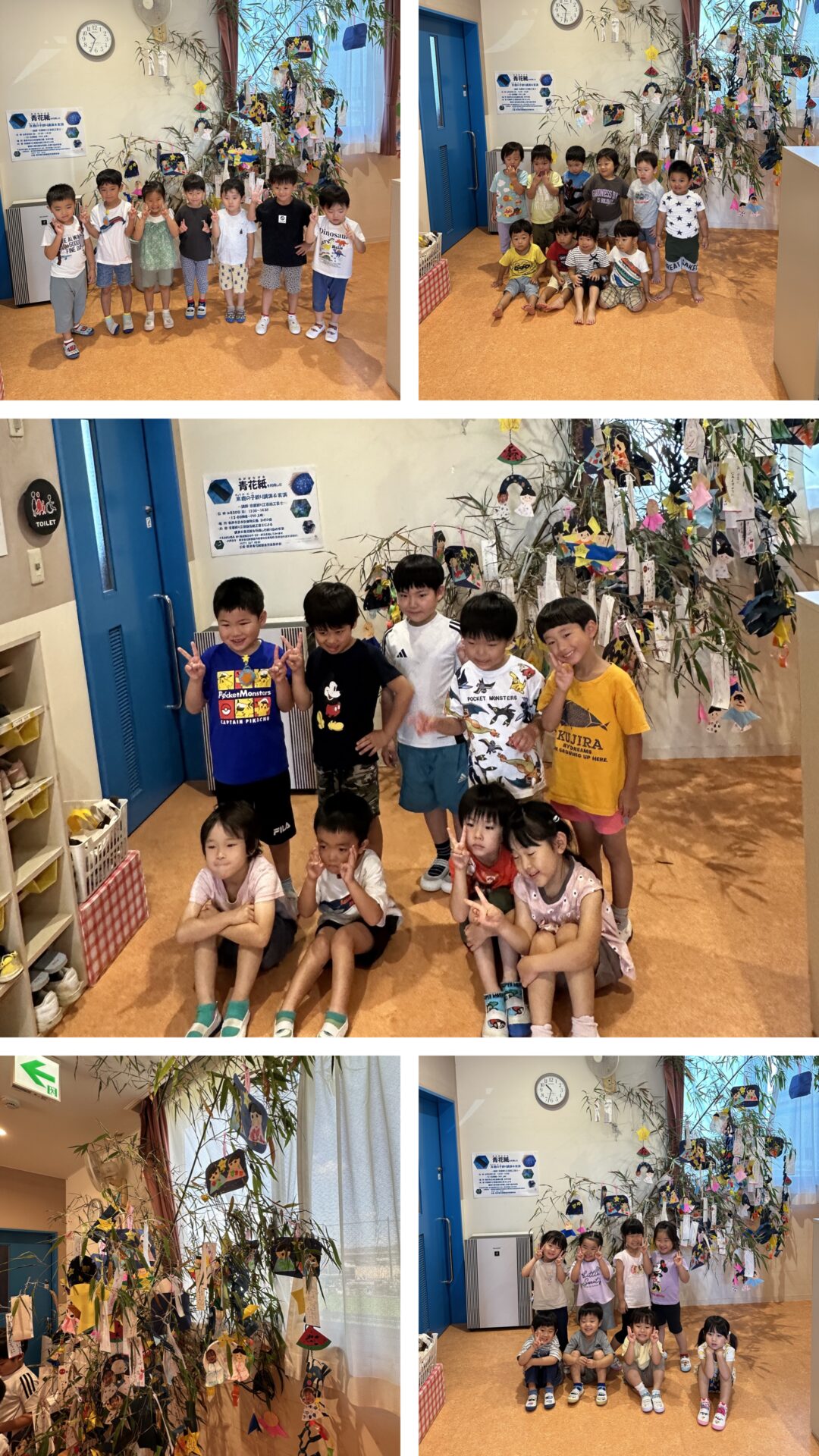 保護者の方と一緒に書いた短冊と一緒に笹に飾りました。