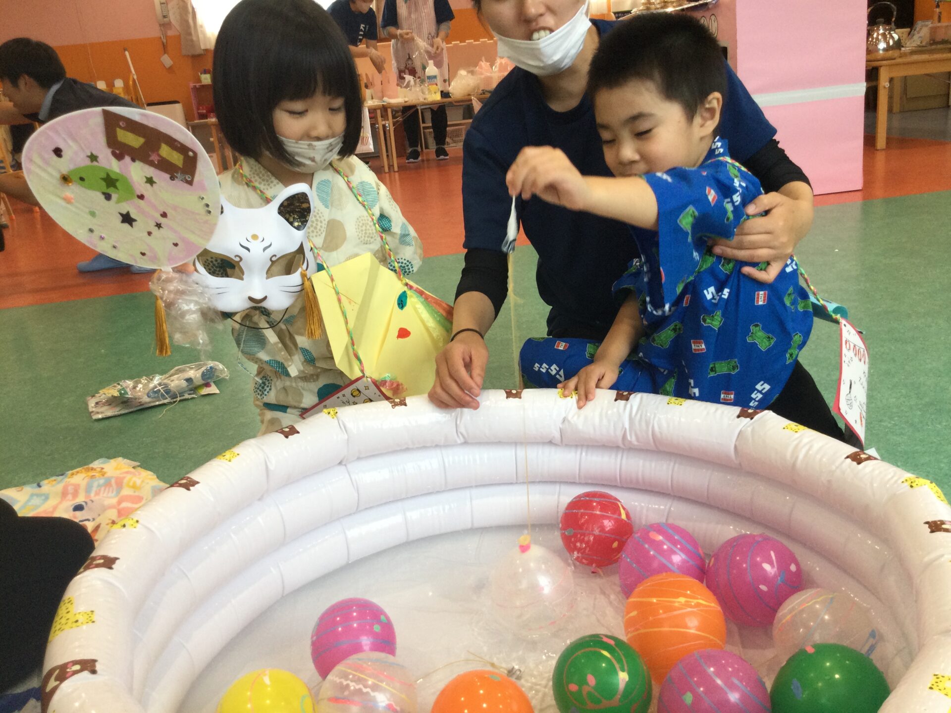 当たりくじや、ボール転がし、ヨーヨー釣りを楽しんで、