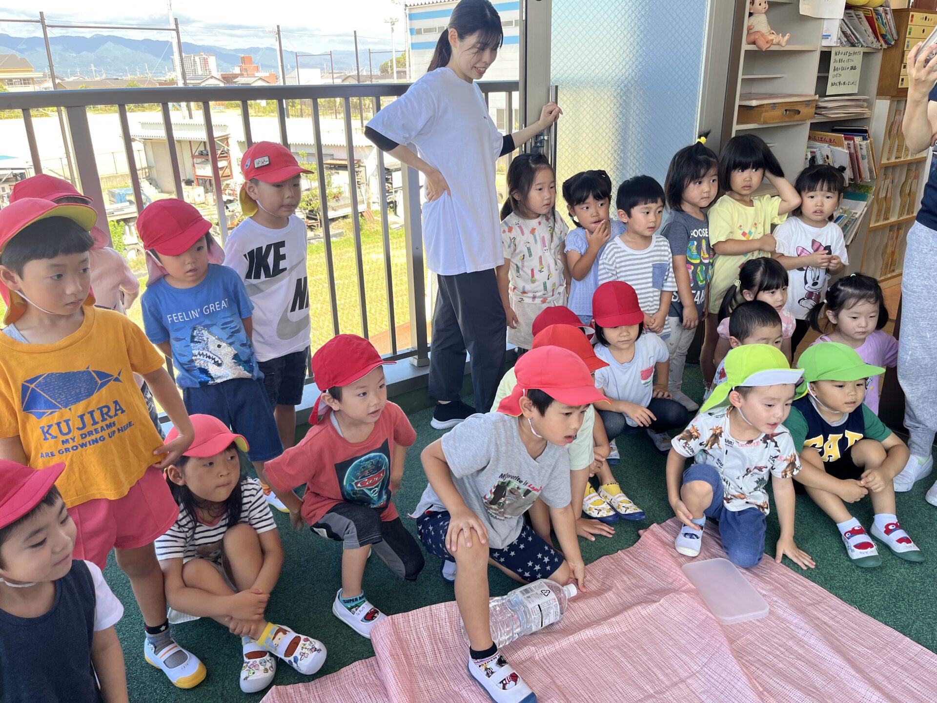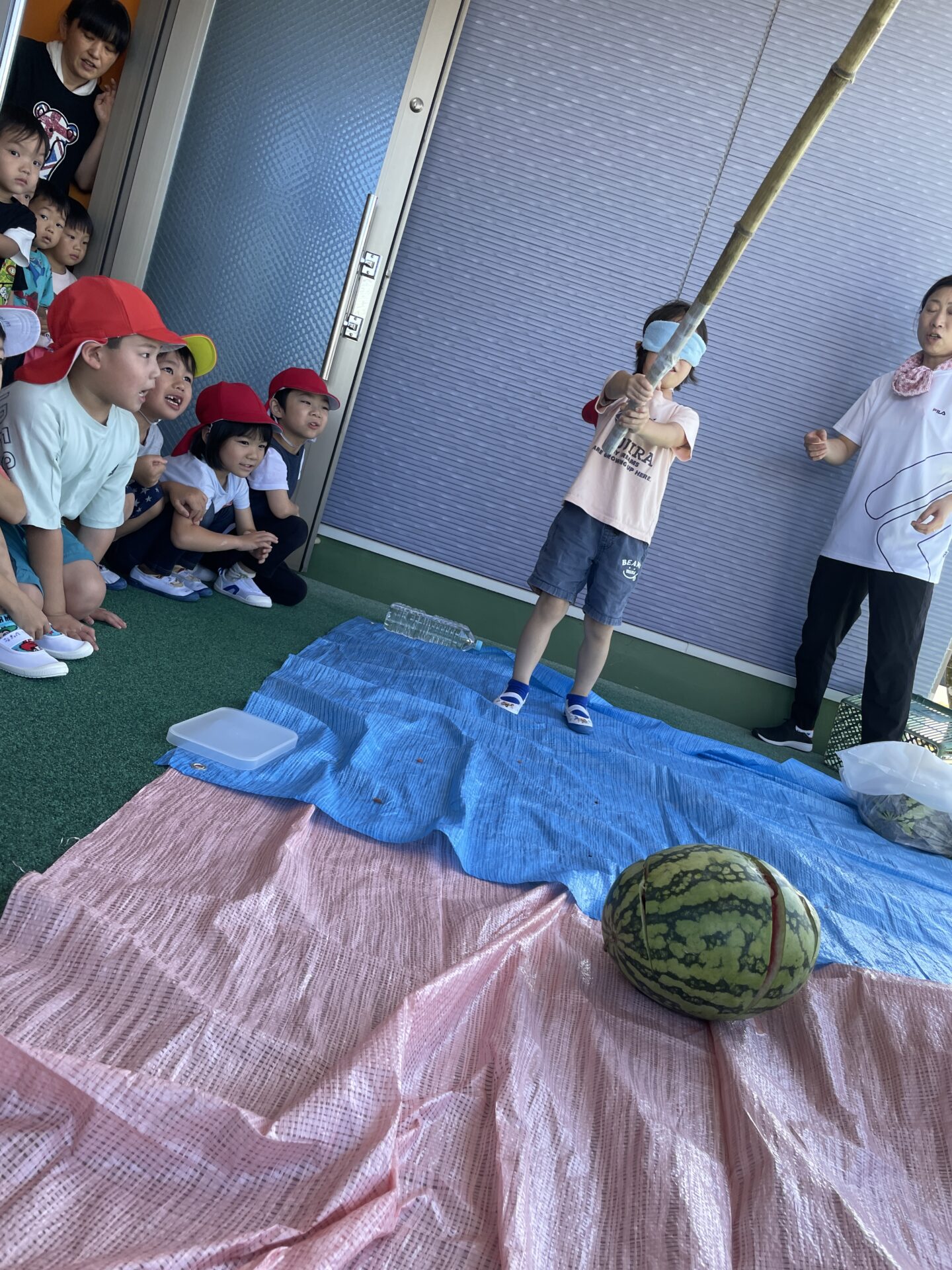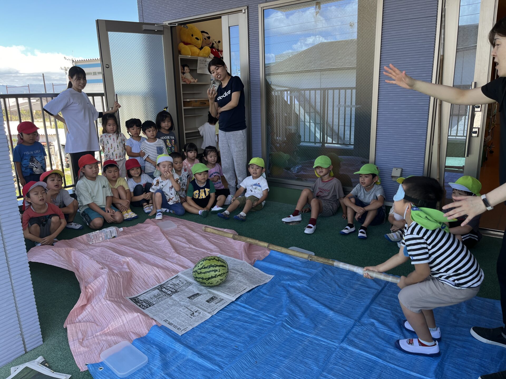 スイカが割れるとスイカの汁が飛び散り、またまた歓声が上がって、みんな大興奮!