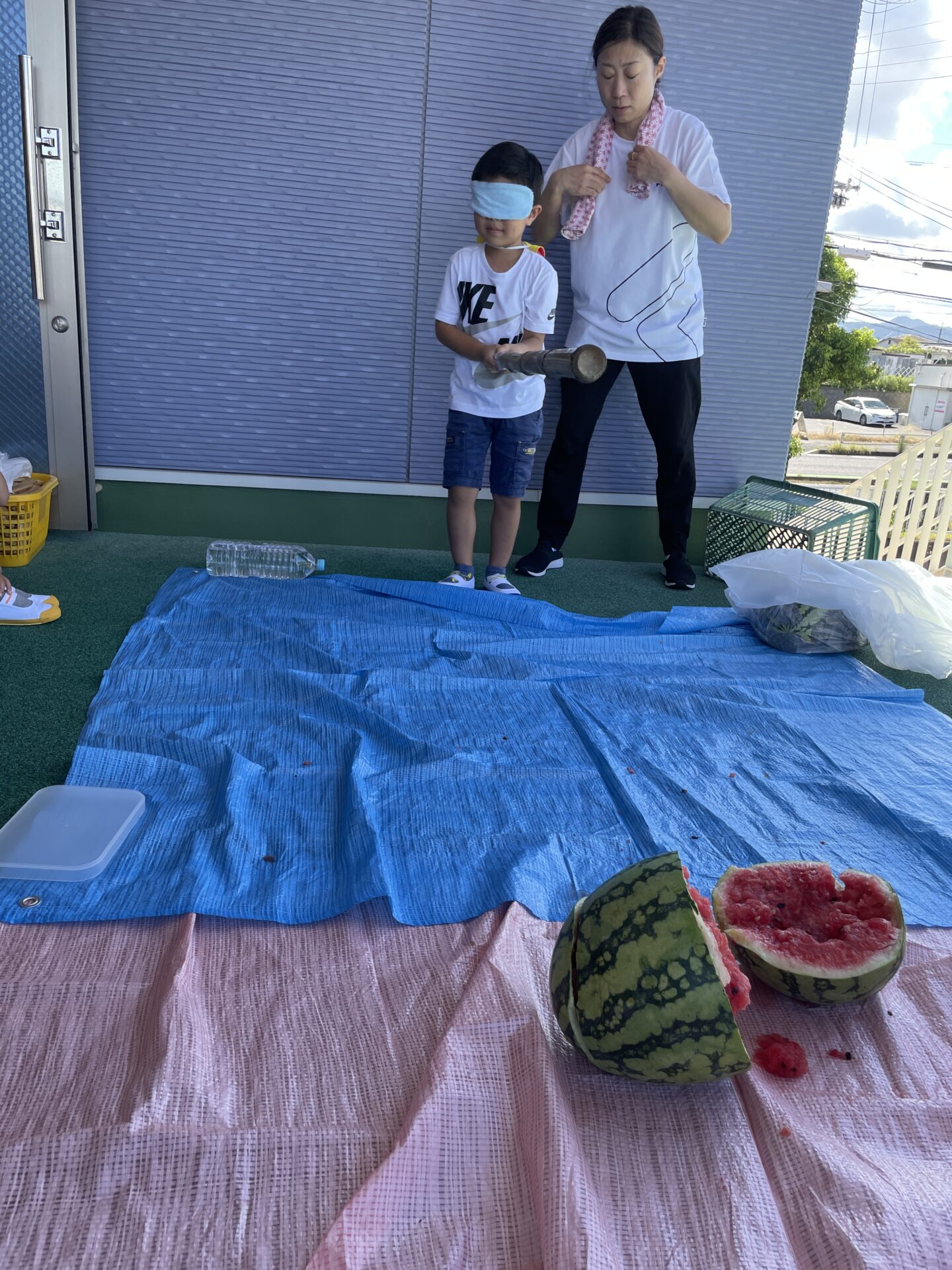 先日、職員の知り合いの農家さんからスイカ割りにどうぞと2つも