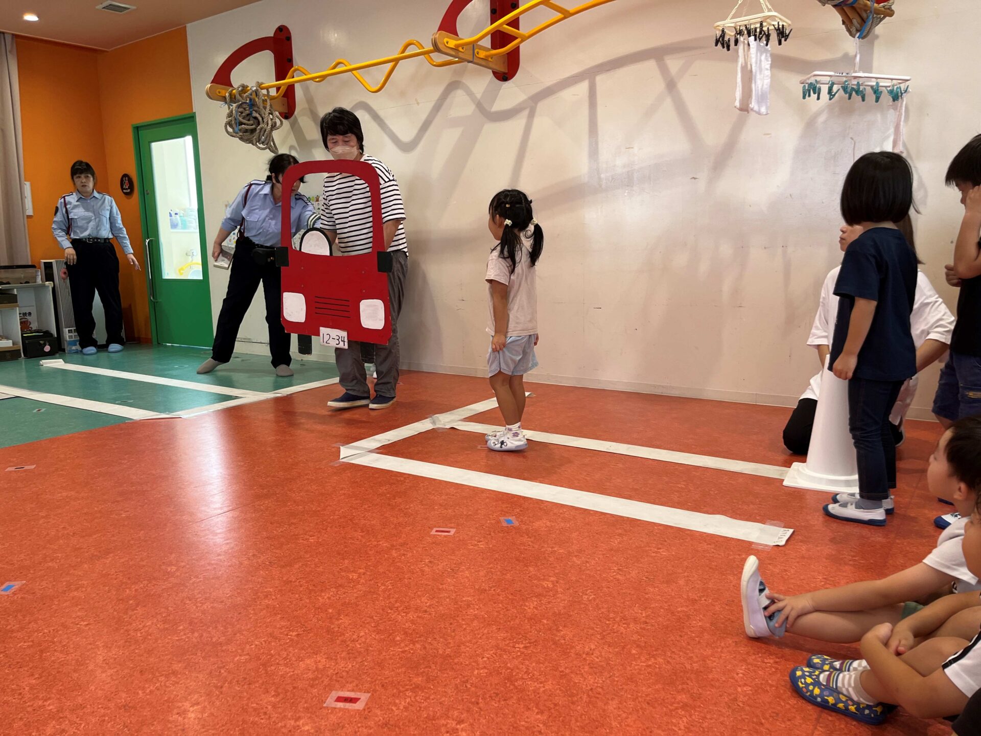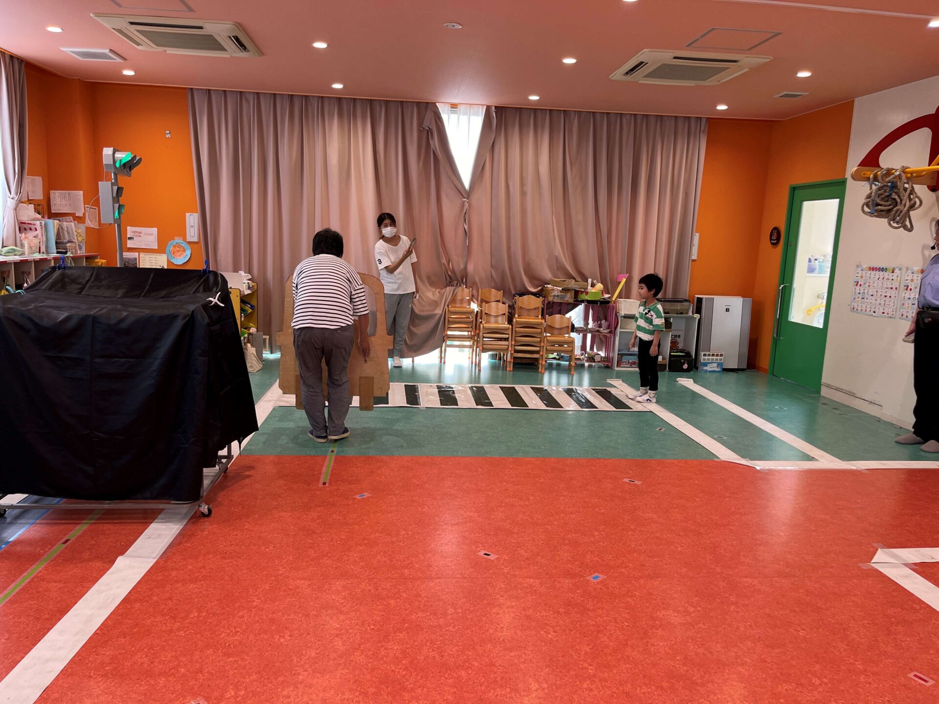「車が来たから止まらなきゃ😮」 「信号が青だから、右左右を見て・・・」と、教えてもらったことを思い出しながら、頑張って最後まで歩きます。