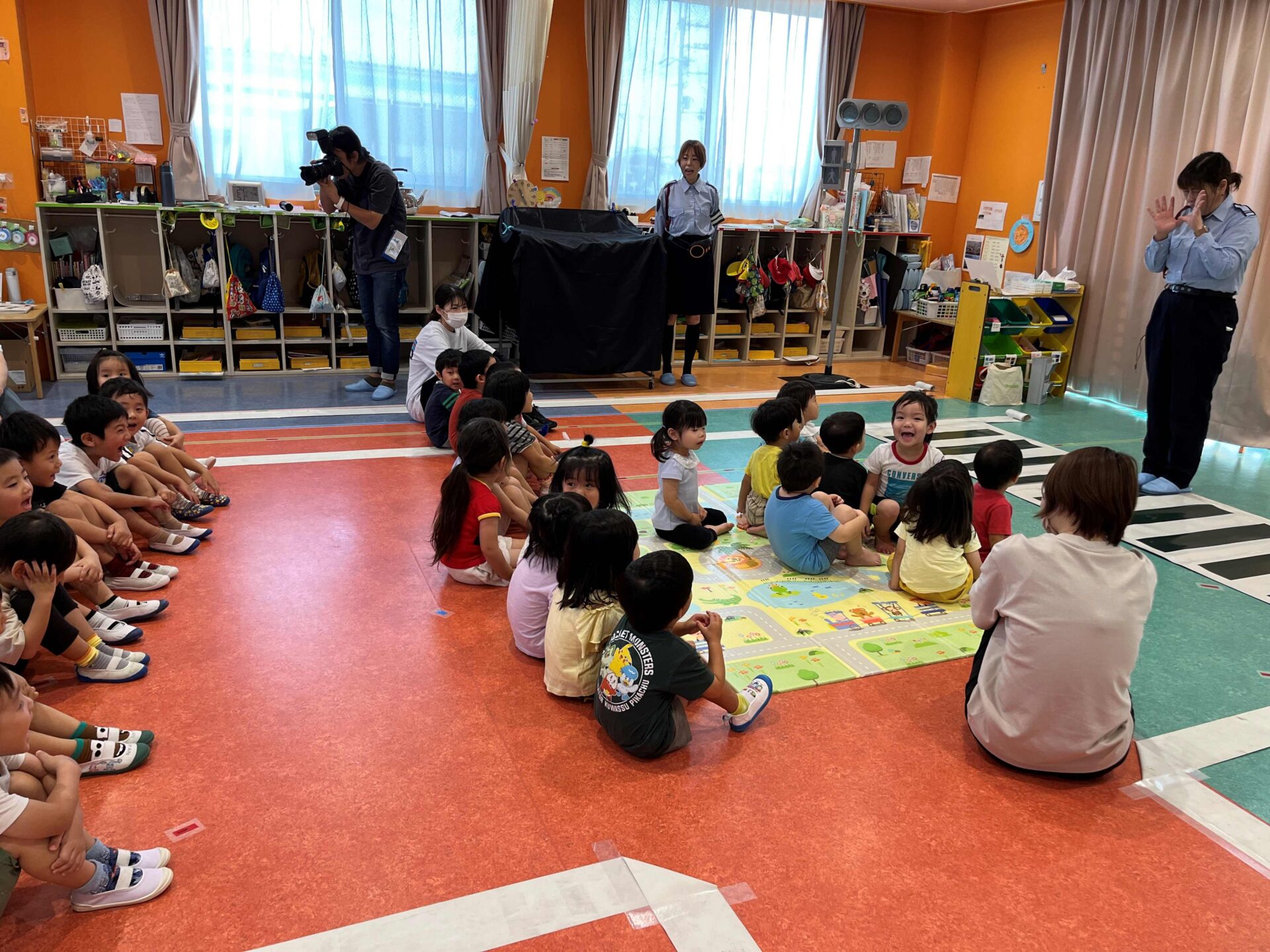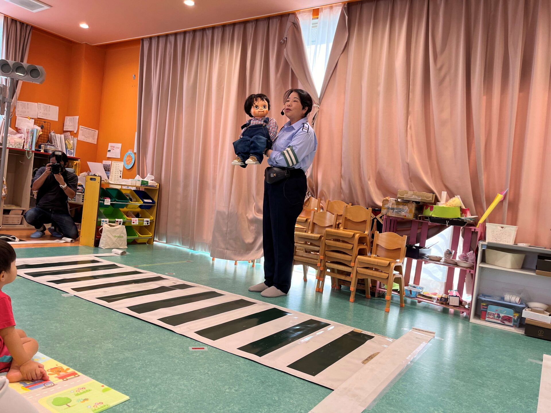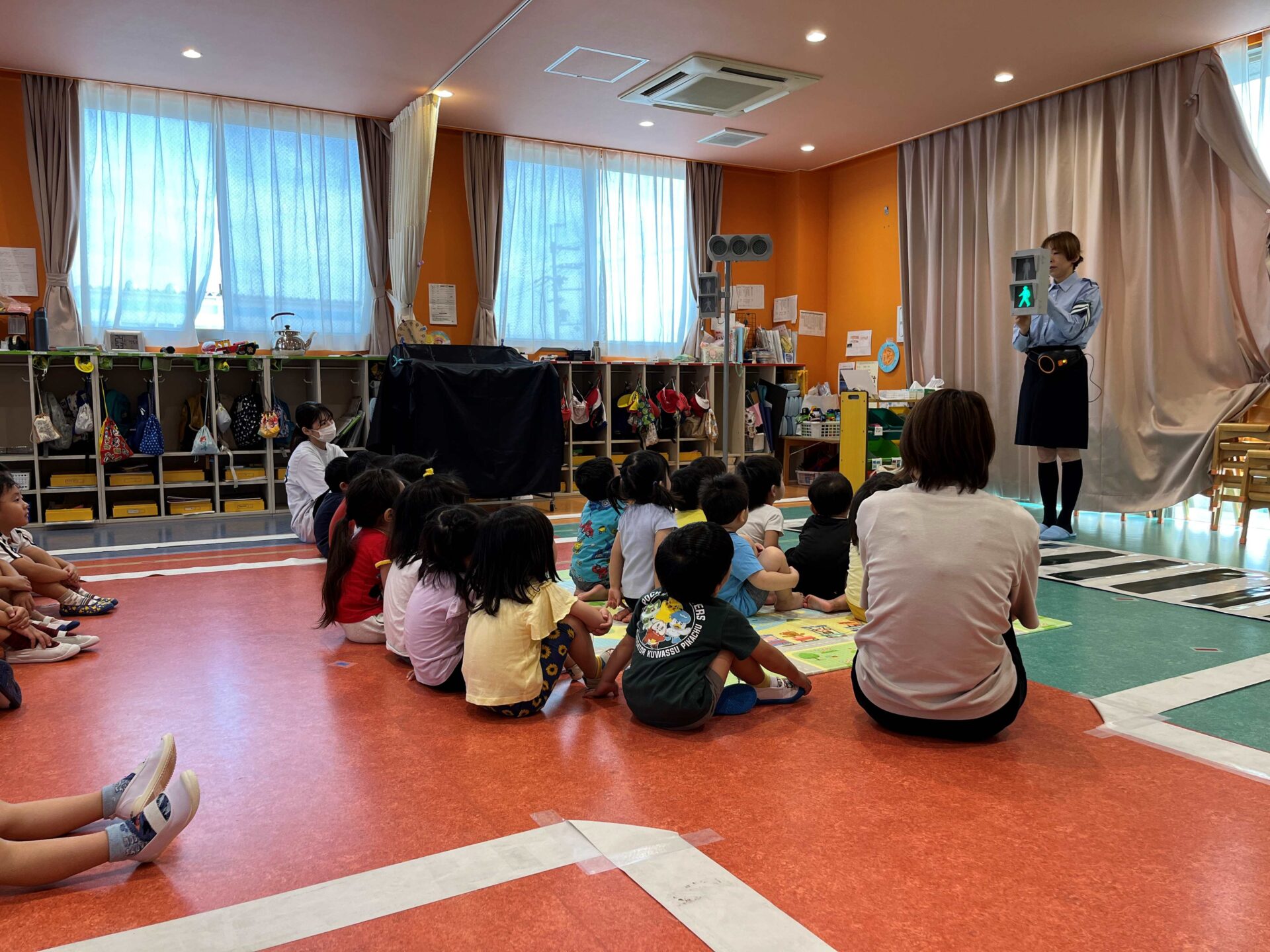 25日(水) 草津市交通政策課から、『わかばチーム』の3名が来園してくださり、交通安全教室を開いてくださいました。