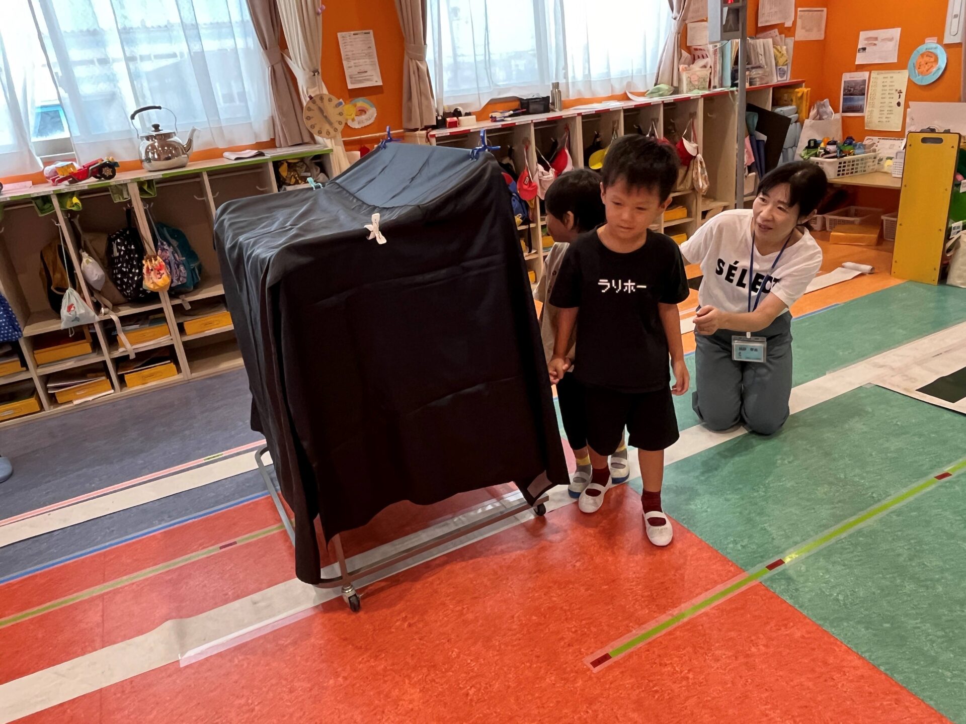 初めて参加する あめチームさんは「何が始まるの~⁉️」と不思議そうにしていましたが、腹話術のケンちゃんの登場で心を掴まれ、興味をもって話を聞いていました❣️