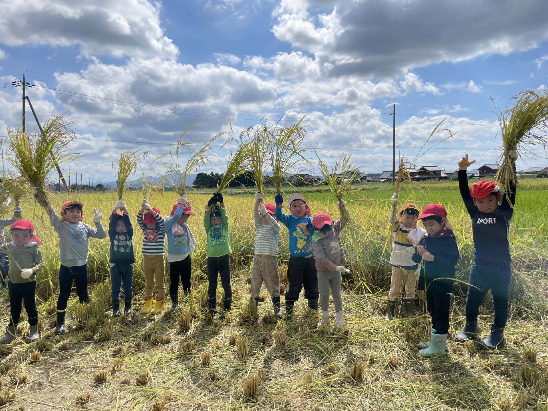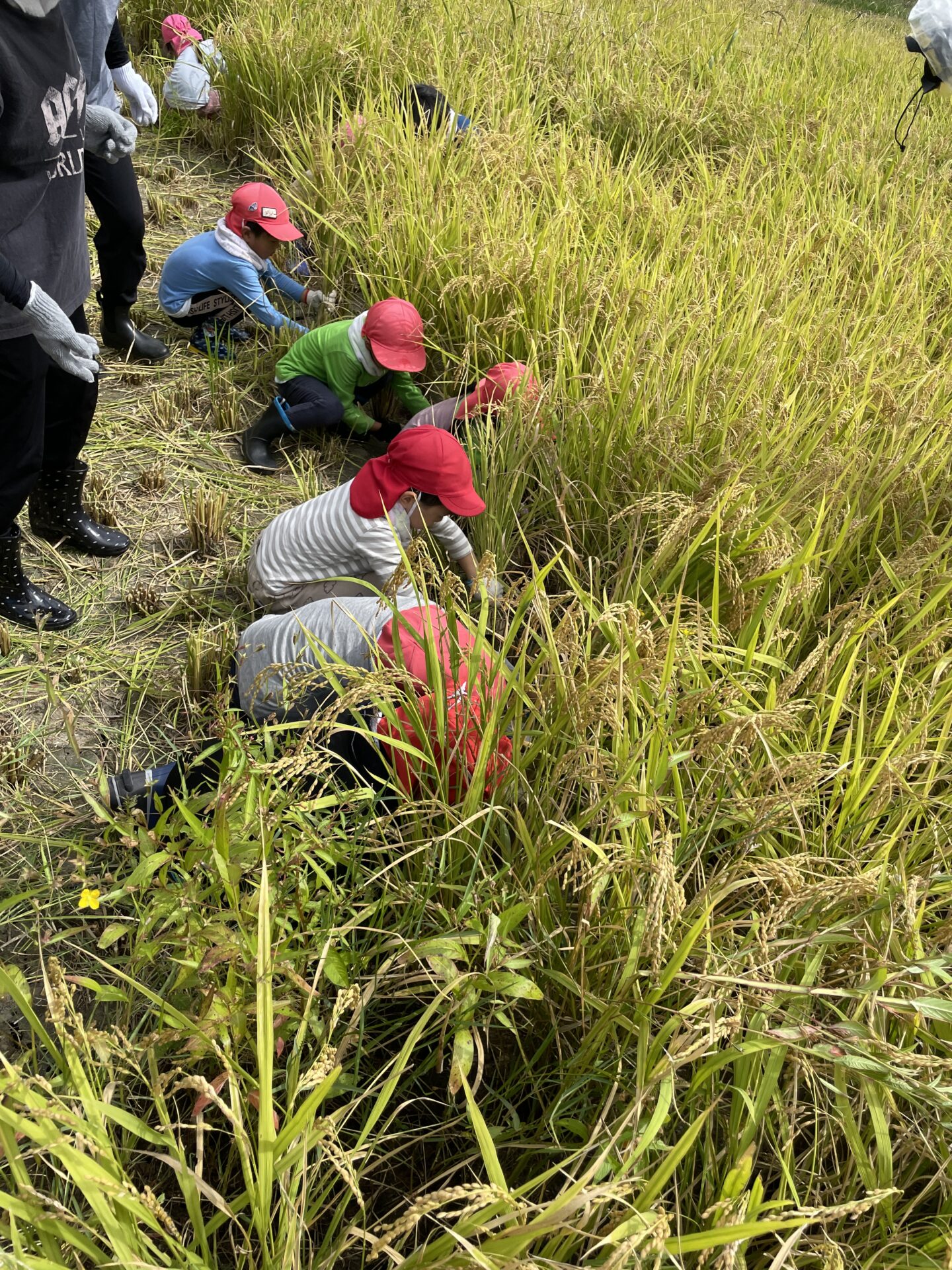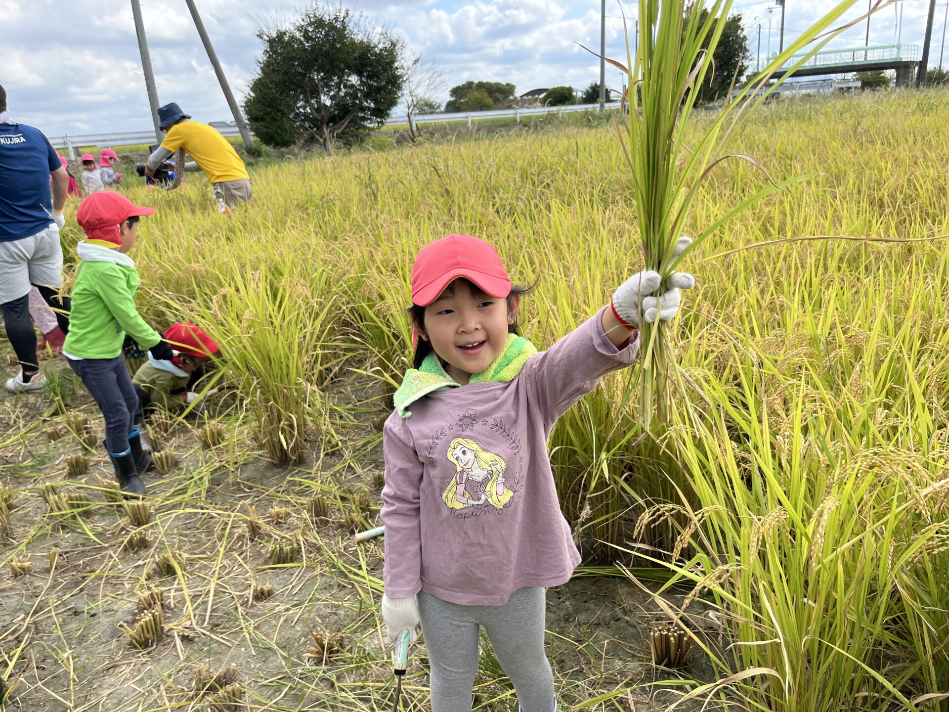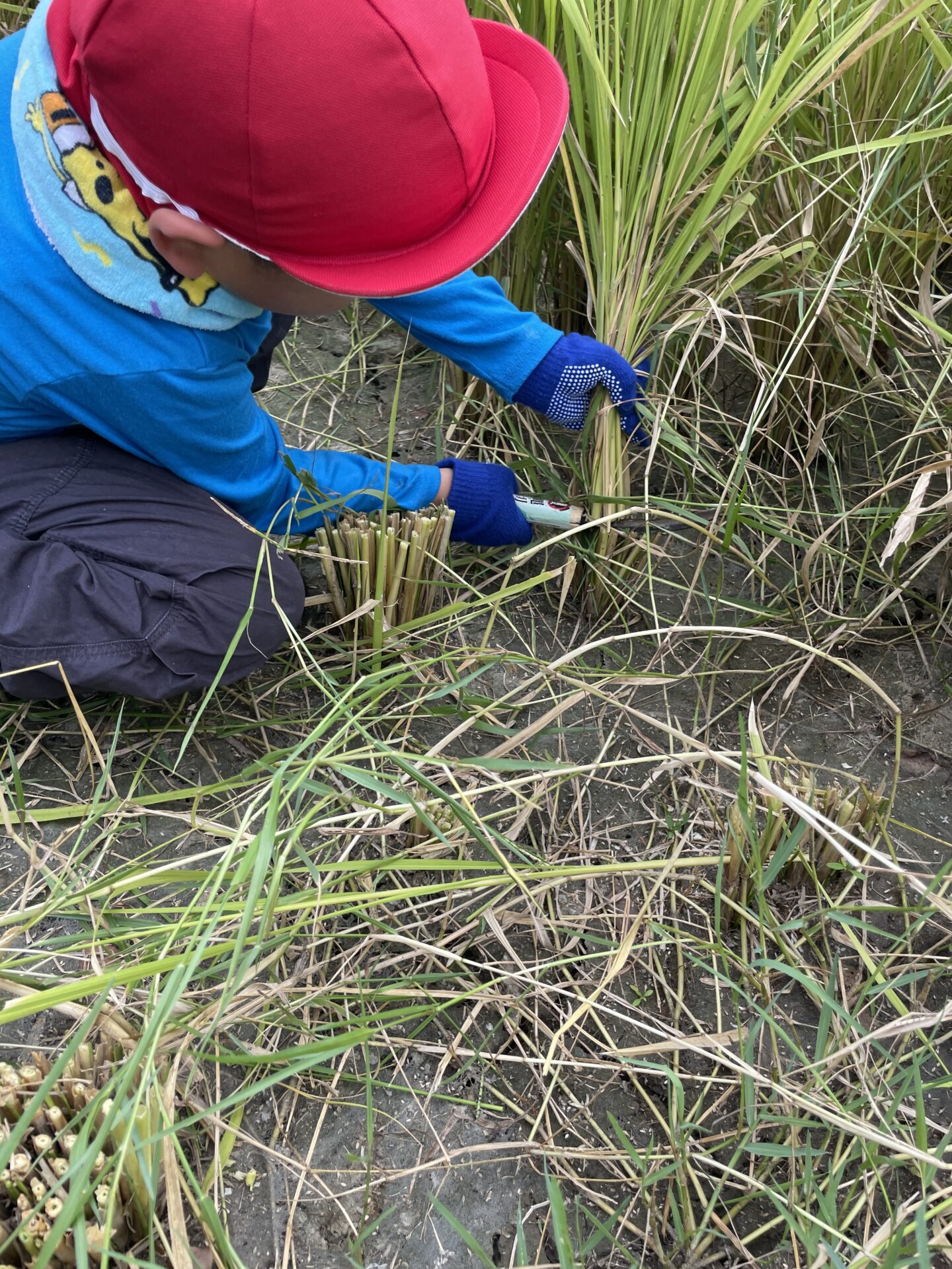 春に田植えをした田んぼにかがやきくじら保育園のお友だちと稲刈りをしに行きました。
