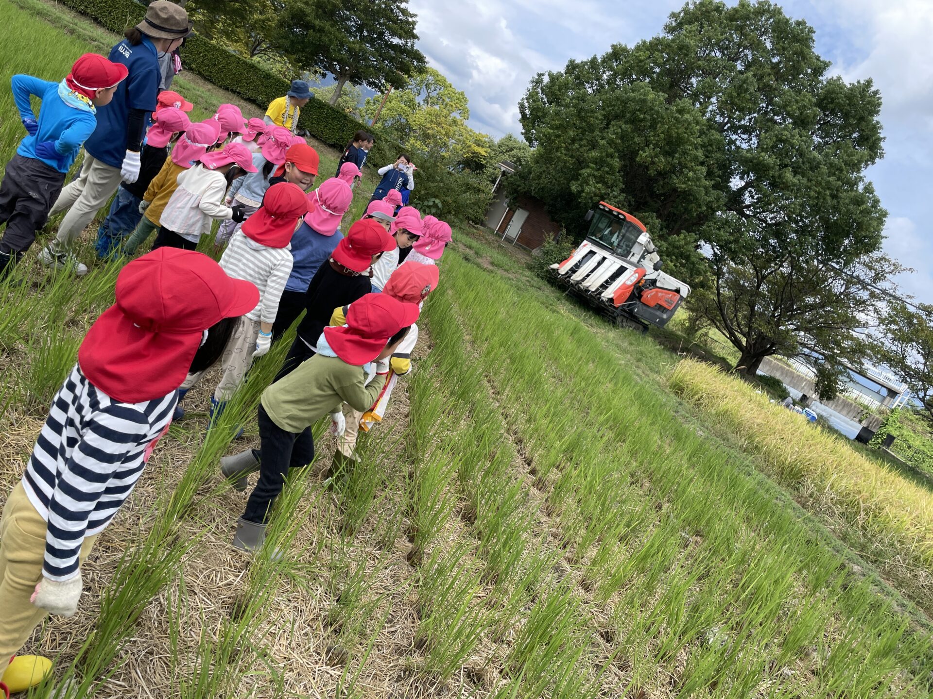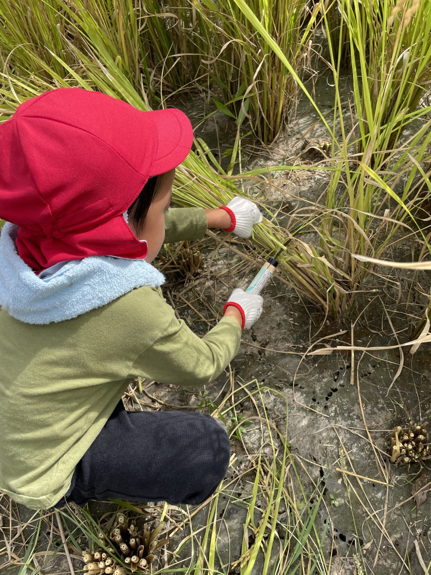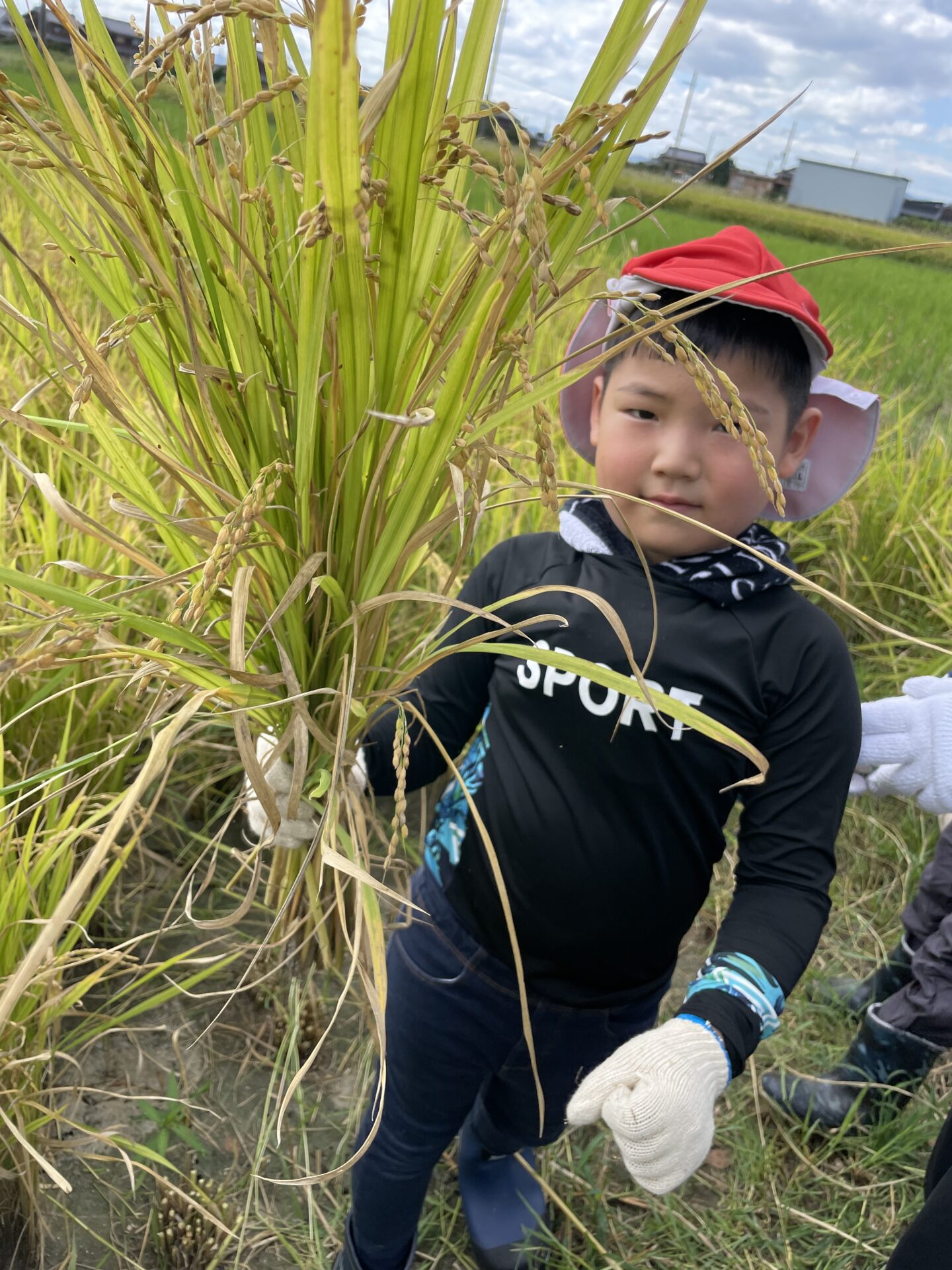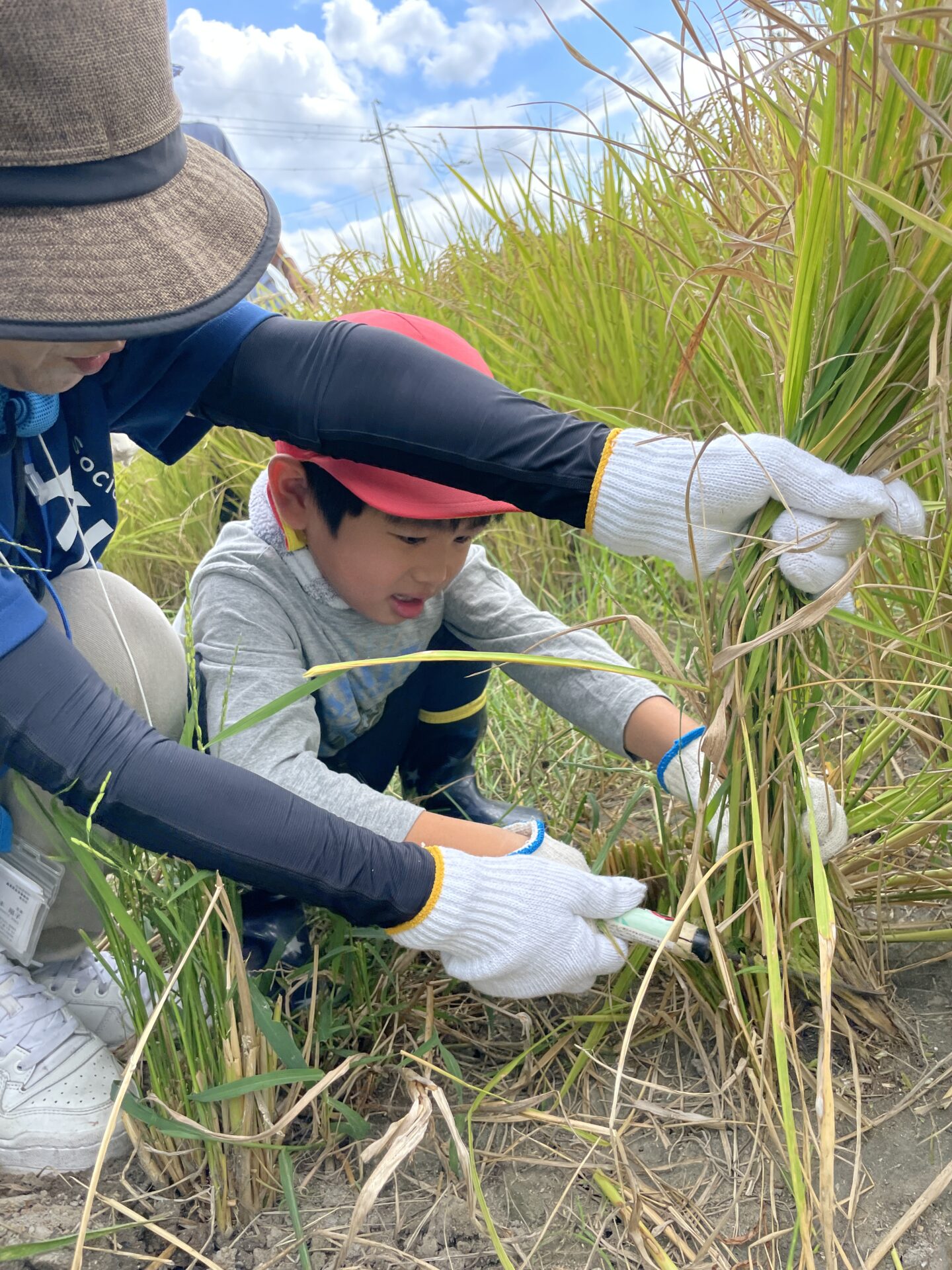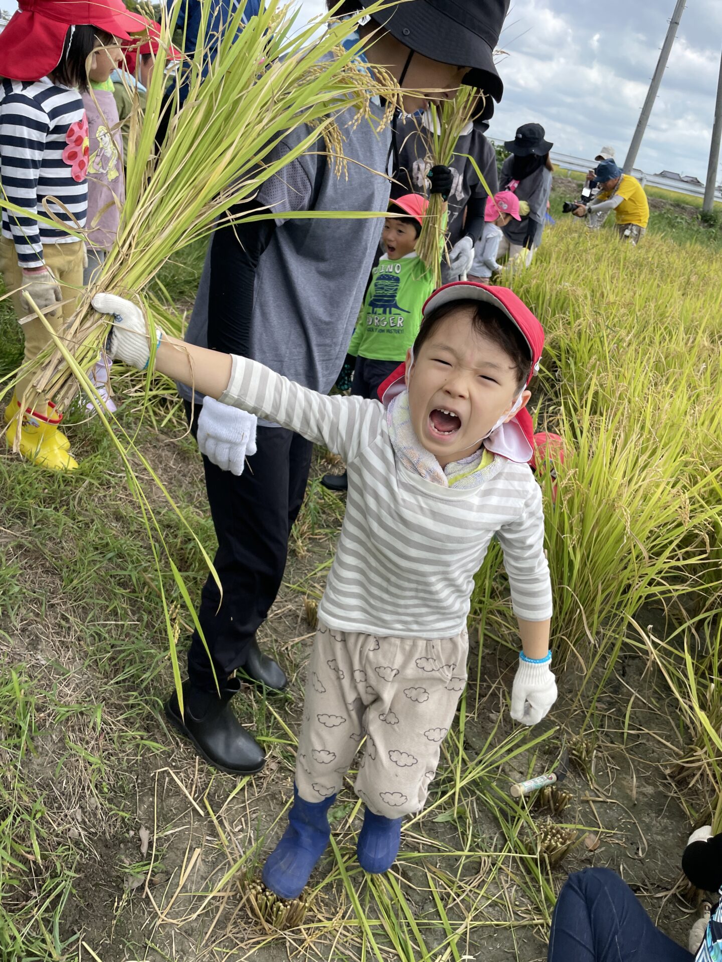 春に田植えをした田んぼにかがやきくじら保育園のお友だちと稲刈りをしに行きました。