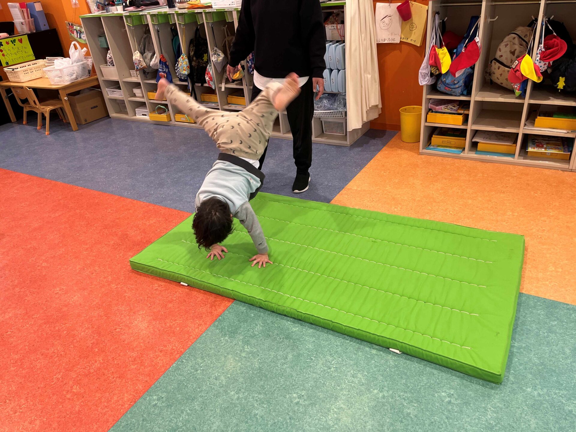 くじらチーム(5歳児)は、側転にも挑戦しています。