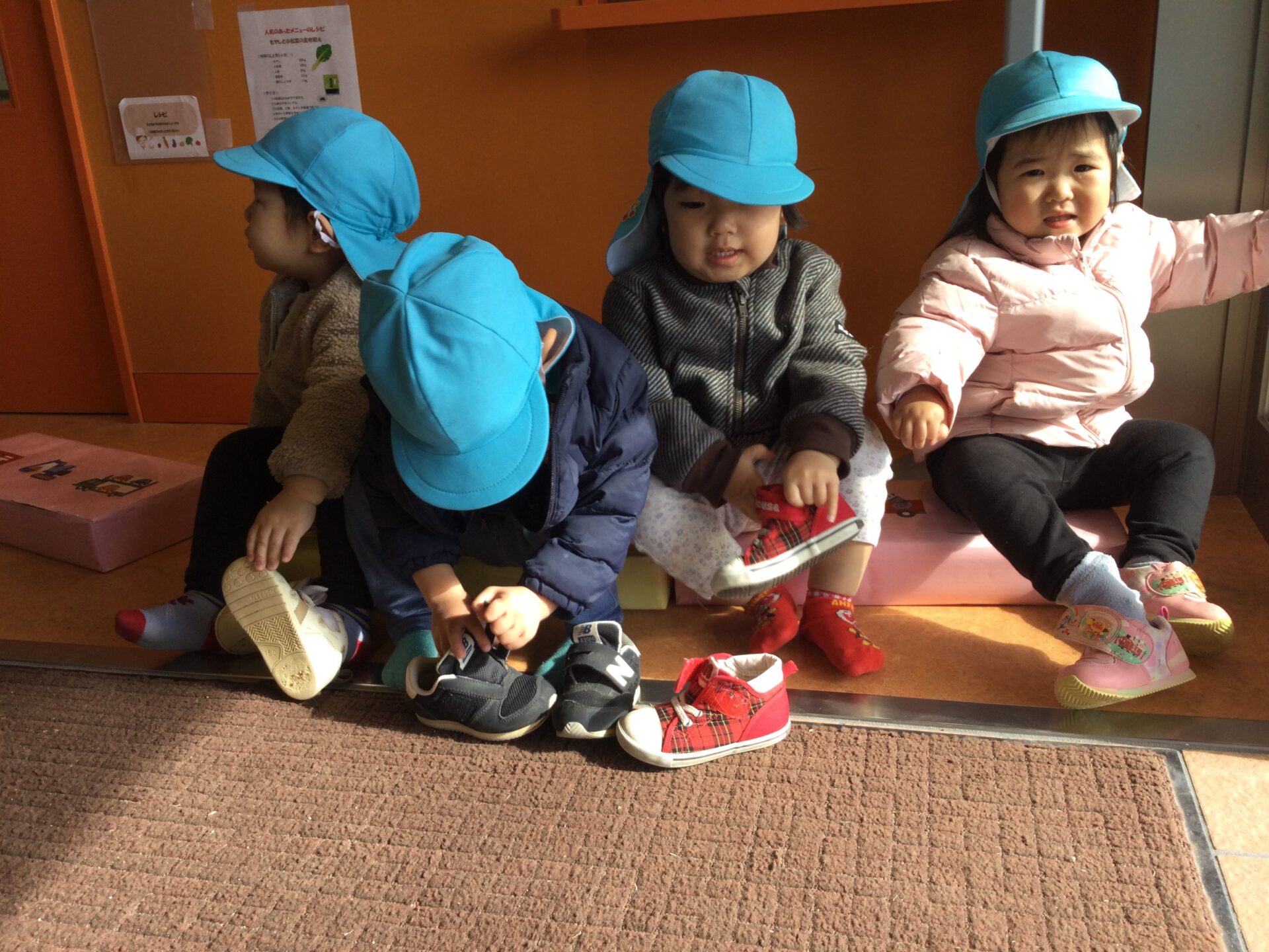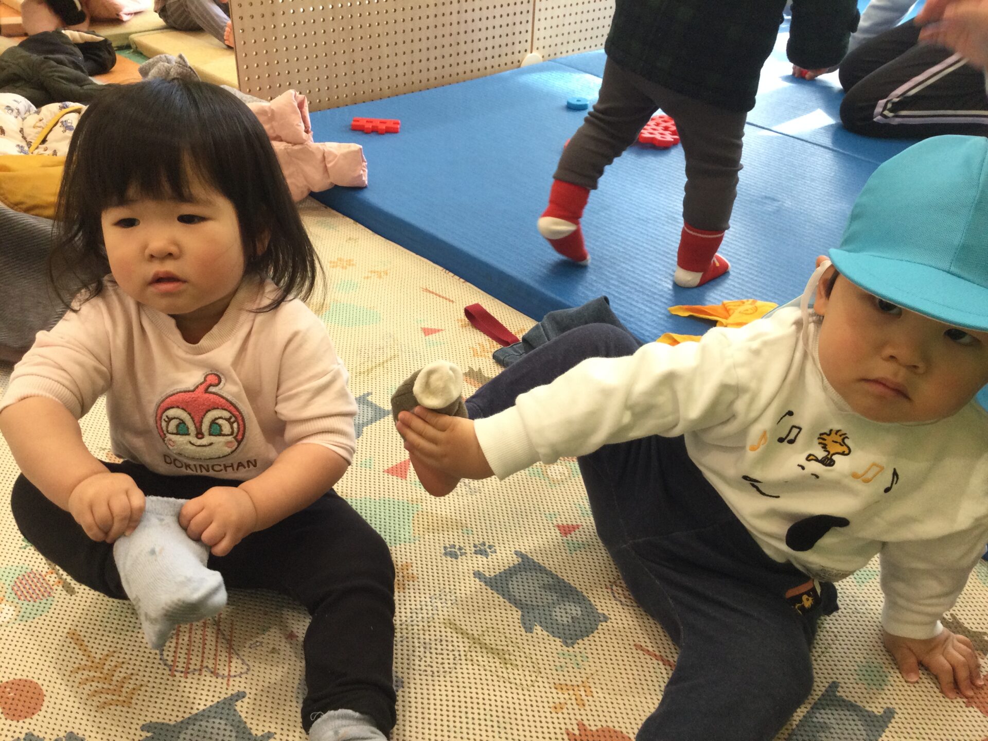 4月から、自分で靴下や帽子を身につけることに挑戦してきました。